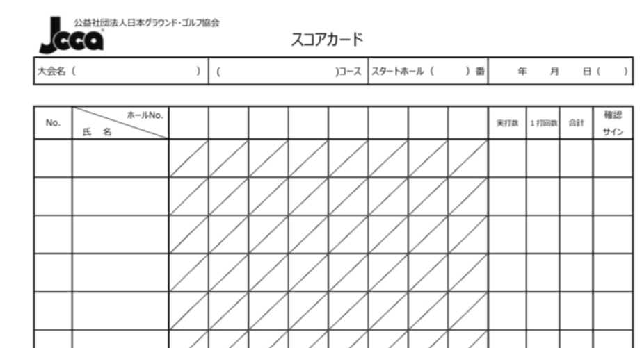 スコアカードの取得方法は大きく分けると公益社団法人「日本グラウンド・ゴルフ協会」のホームページからダウンロードする方法と、市販のスコアカードを今日入する方法の2種類があります。